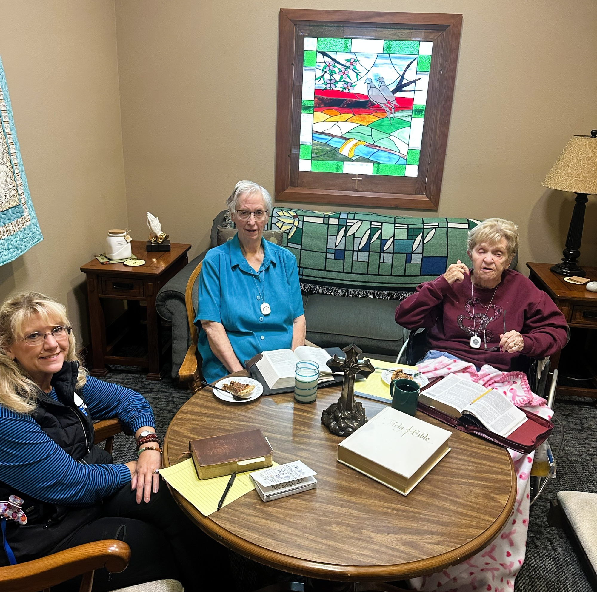 This weekend, we gathered with a few of our patients for a Bible study on the Book of Genesis. Hearing everyone share their faith was truly heartwarming — and thanks to Perkins for donating two delicious pies to enjoy together! ![]()