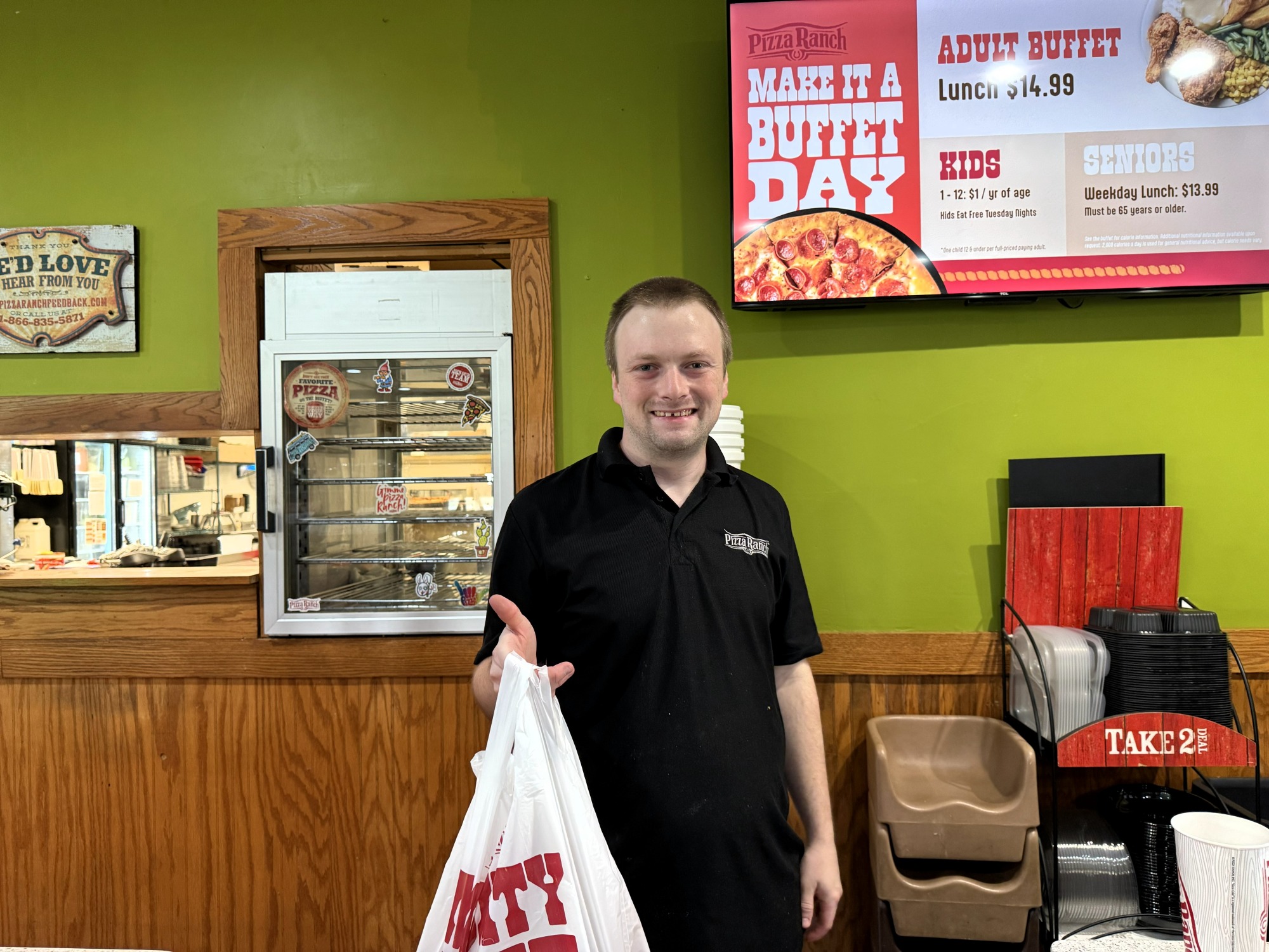 When Pizza Ranch heard, they were more than happy to donate a meal just for her. The smile on her face when she received that chicken said it all — it truly made her week.